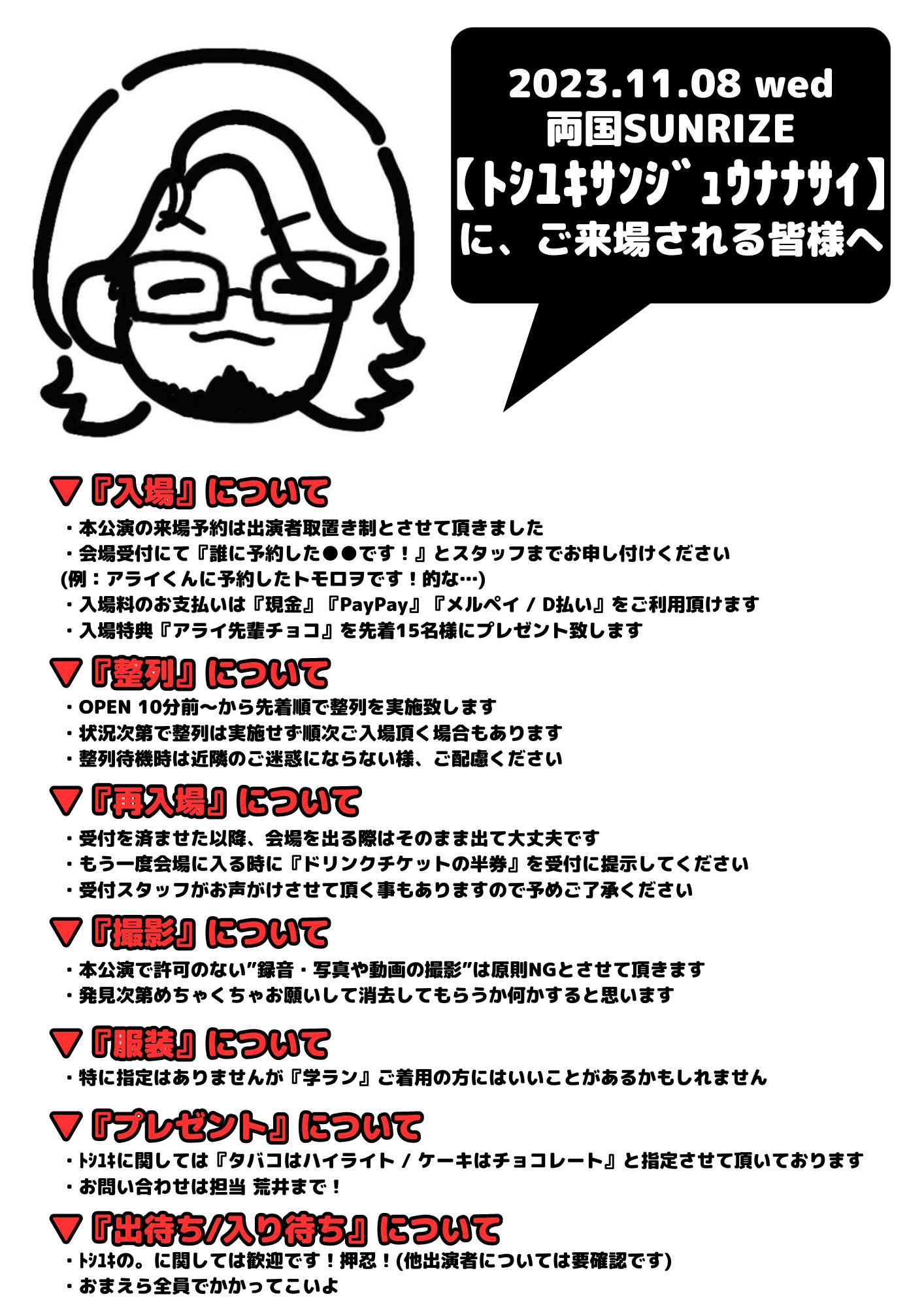 ▼来場特典 先着15名様限定! 『アライ先輩チョコ』プレゼント!!!