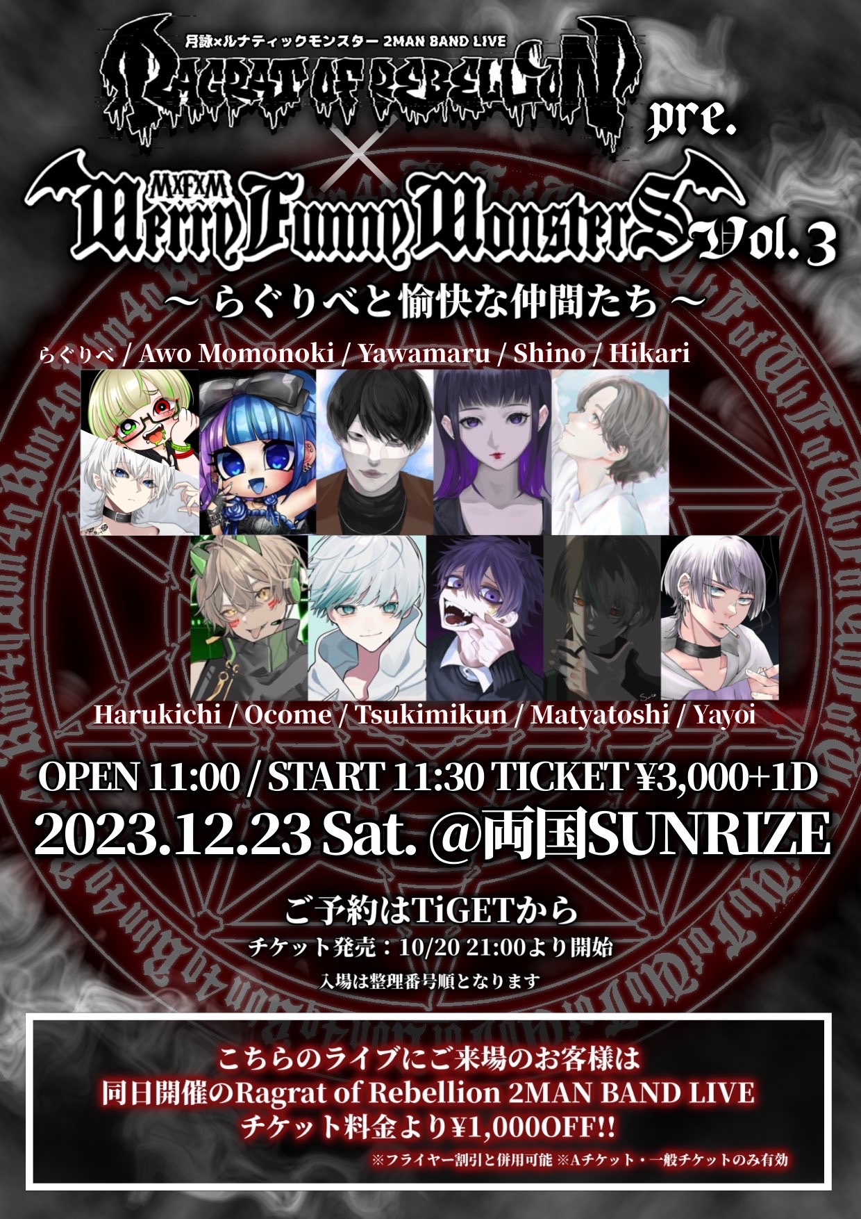 ¥3,000+1D(当日前売り問わず)
