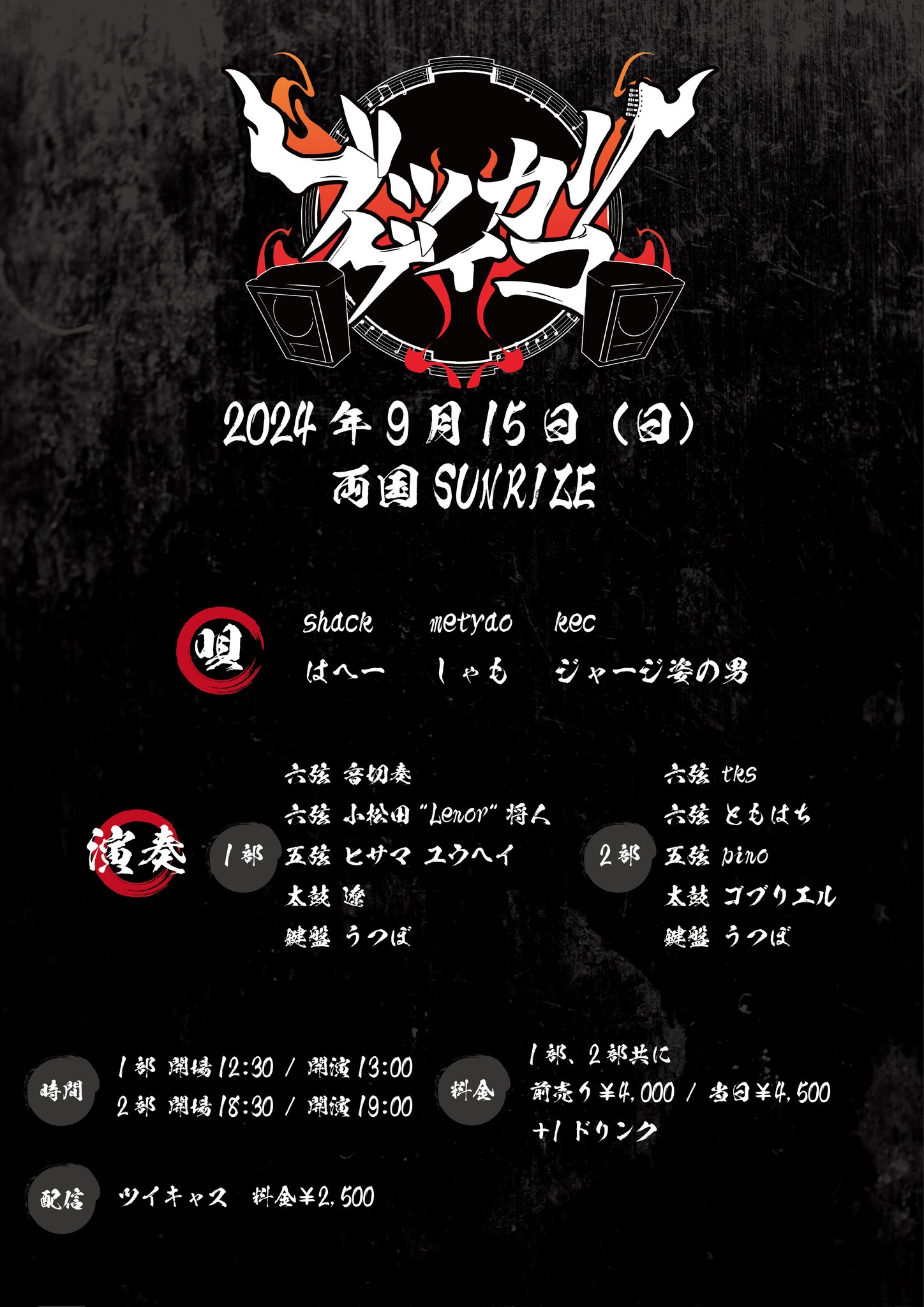 ADV ¥4,000+Drink(¥600-) / DOOR ¥4,500+Drink(¥600-)