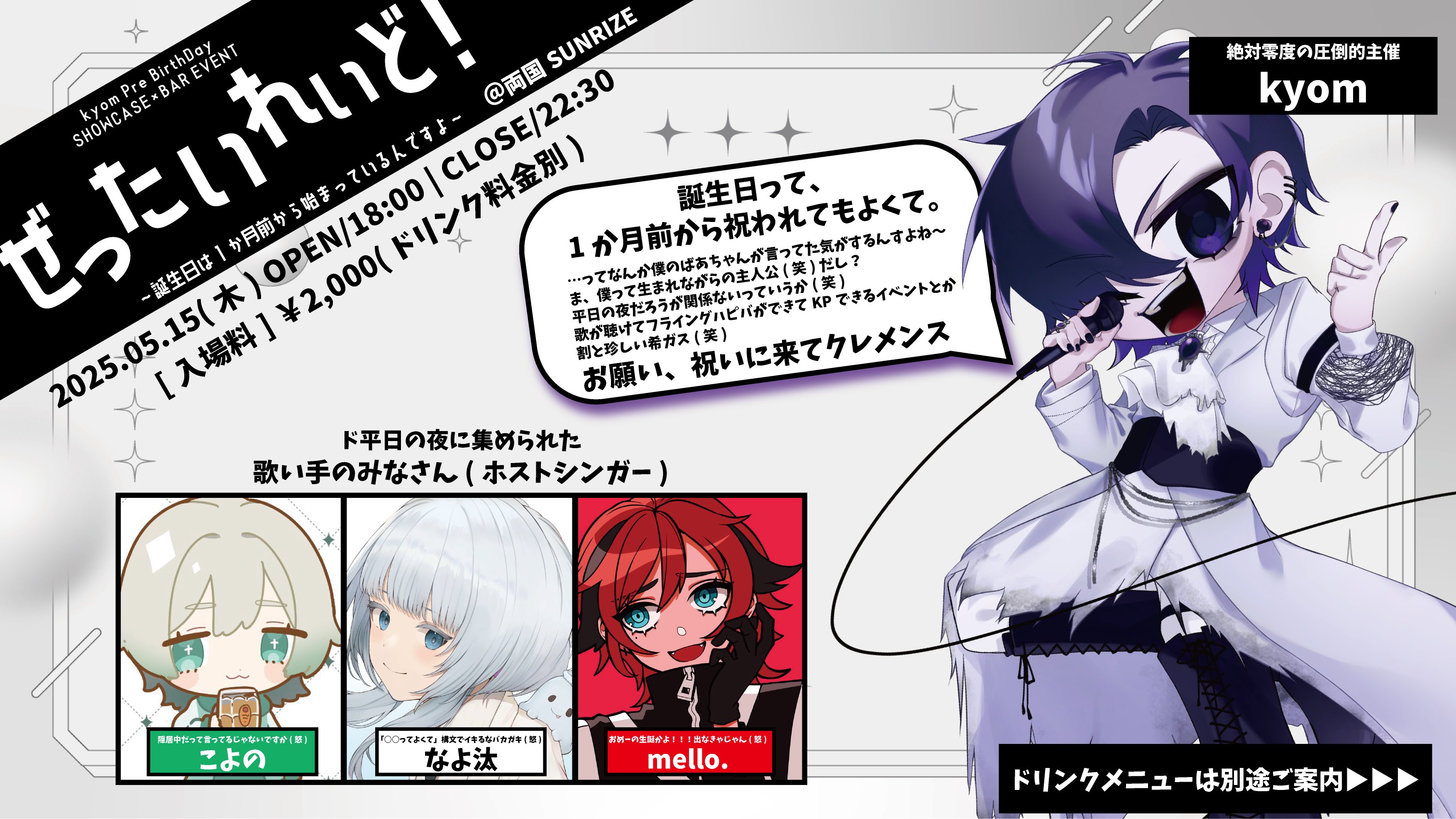 (飲み放題+kyomキャスドリ1杯+生誕限定ステッカー付き)