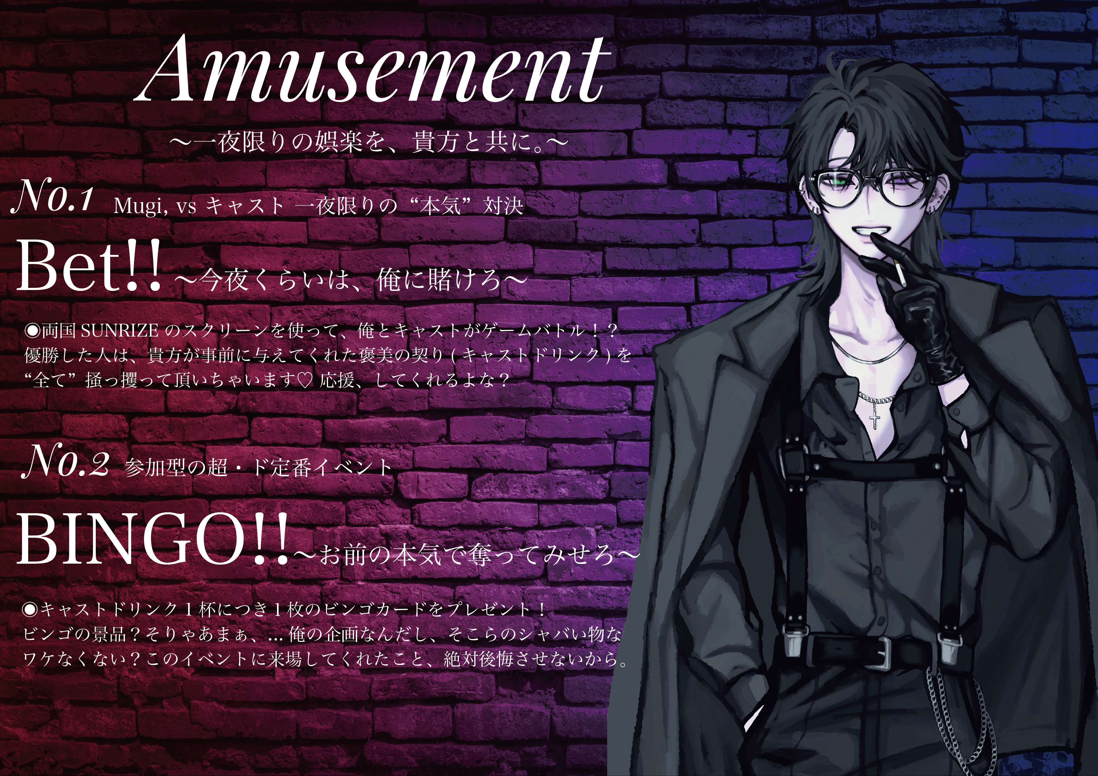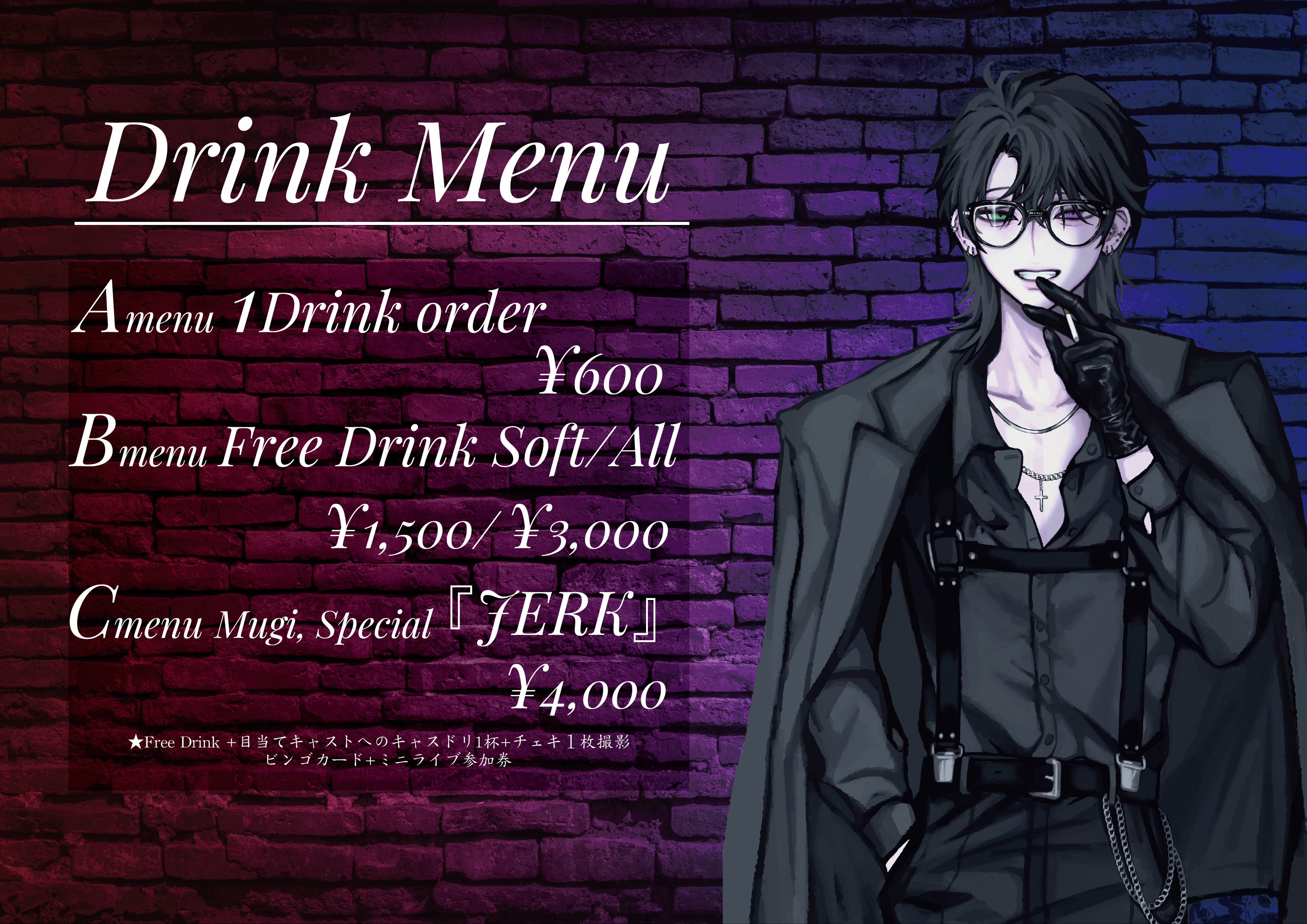 飲み放題+お目当てキャストドリンク1杯+チェキ1枚撮影券+ビンゴカード+ミニライブ参加券
