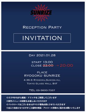 閉店の運びとなり、赤坂店スタッフは本店の両国SUNRIZEへ集結致しました。