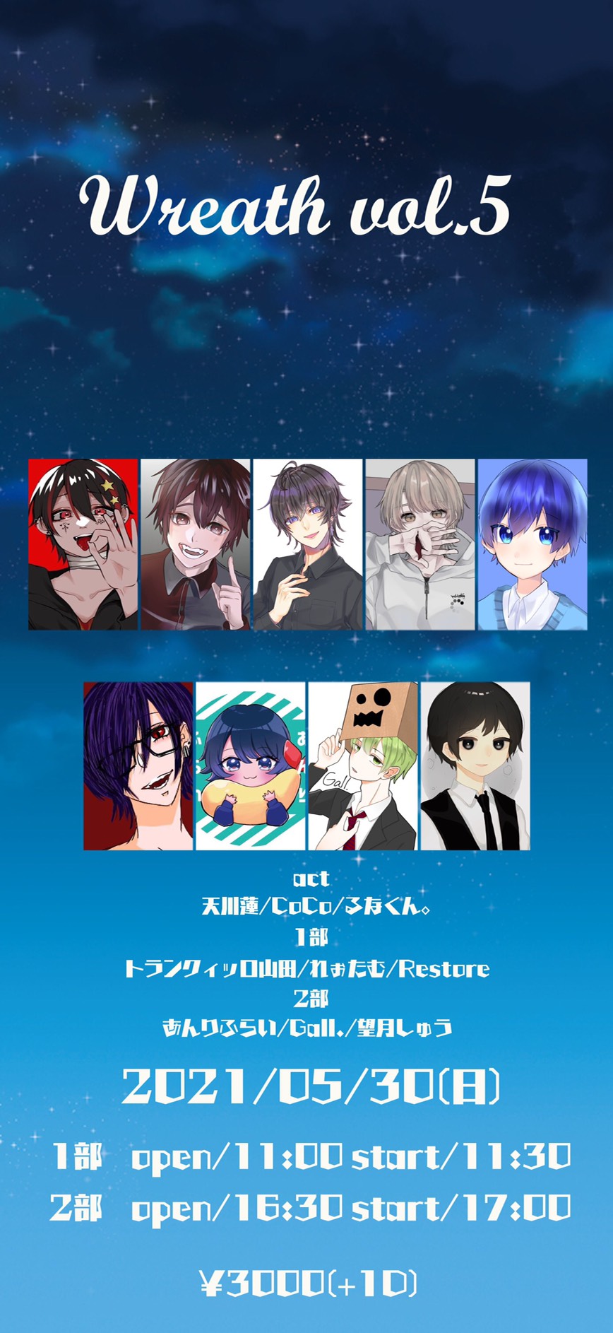 2部【Wreath vol.5】 OPEN 16:30 / START 17:00 ¥3,000+Drink(¥600-)